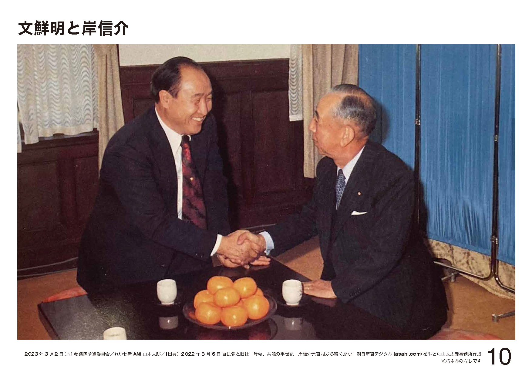 資料の⑩、統一教会とずぶずぶ、それが自民党ですけれども、その立て役者、アメリカから絶大な信頼、岸信介。