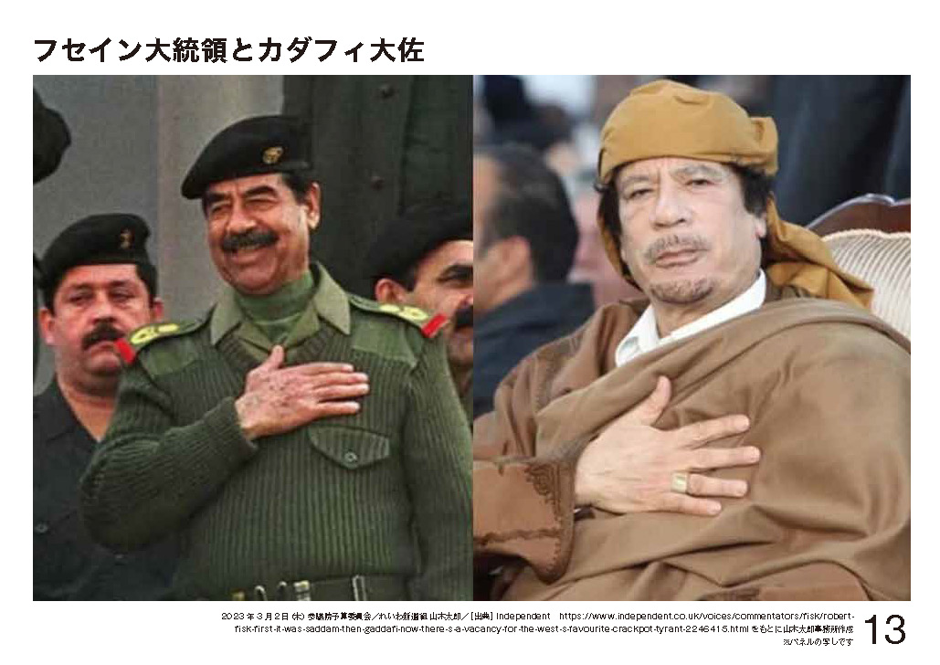 資料の⑬、特に石油取引、ドル以外で行おうとした国は虎の尾を踏む。例えば、ユーロで石油取引を開始したイラクのフセイン大統領。
