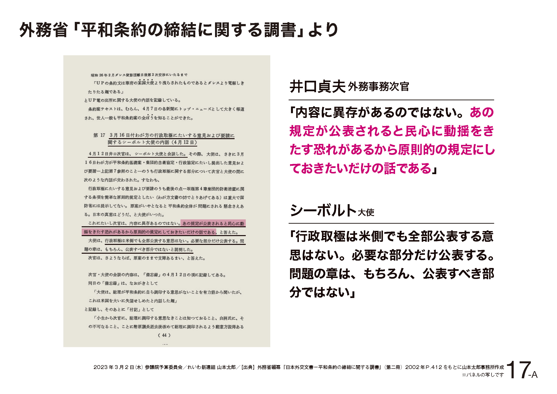 ○山本太郎君 こうなっているけれど、大丈夫。密約は生きております。