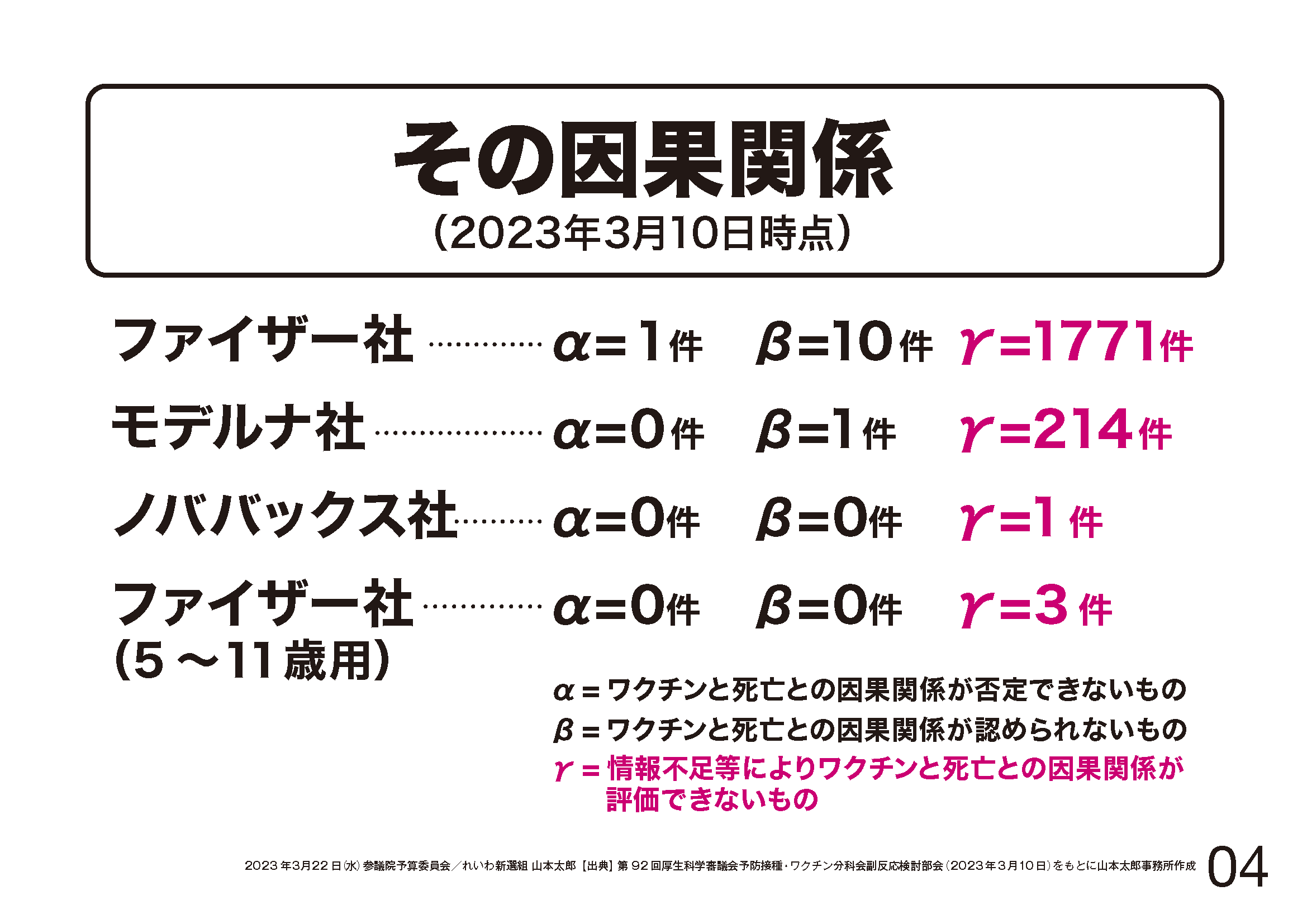 ○山本太郎君 現場の医師が解剖まで行って因果関係ありと判断したものを、よく分からないという理由で覆すほどのエビデンス、厚労省得られていないのに、よく分からないって横に置いている状態なんですよ。