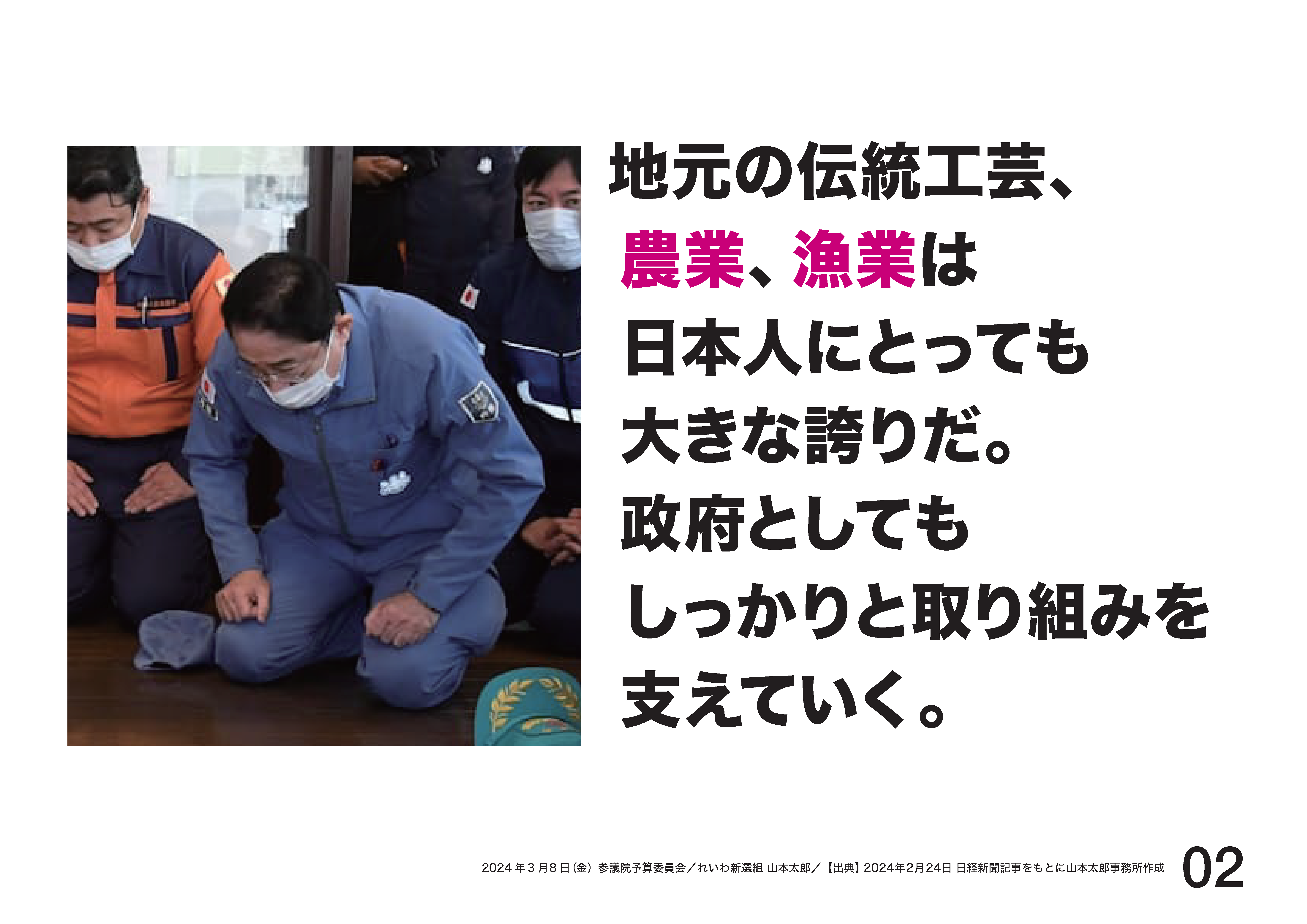 ○山本太郎君 総理、美しい能登の第一次産業をこれ守ると、是非もう一度宣言いただけないですか。よろしくお願いします。