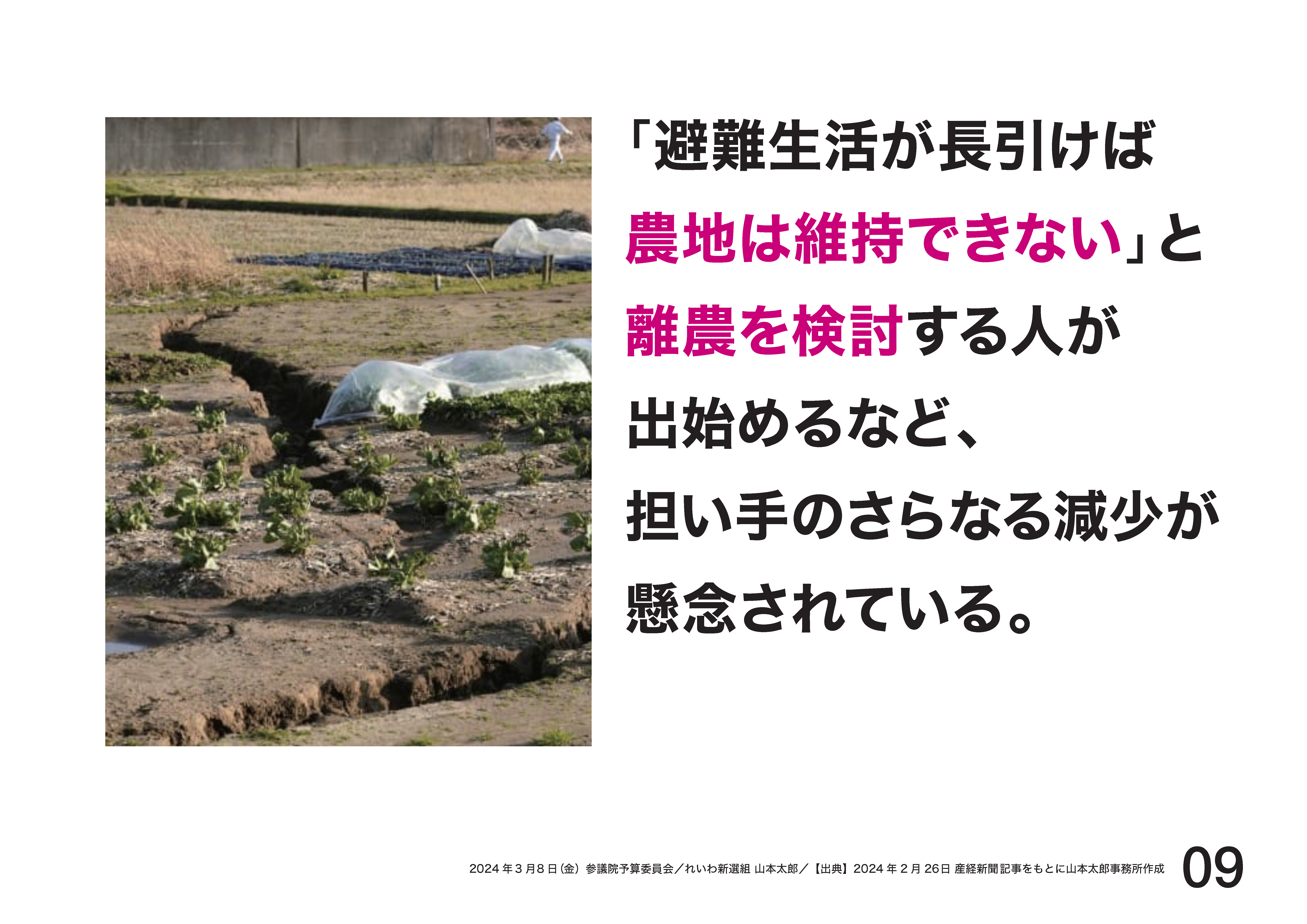 ○山本太郎君 能登半島は、地震により一次産業が危機的状態です。一次産業なくして当然地域コミュニティーの維持はありません。