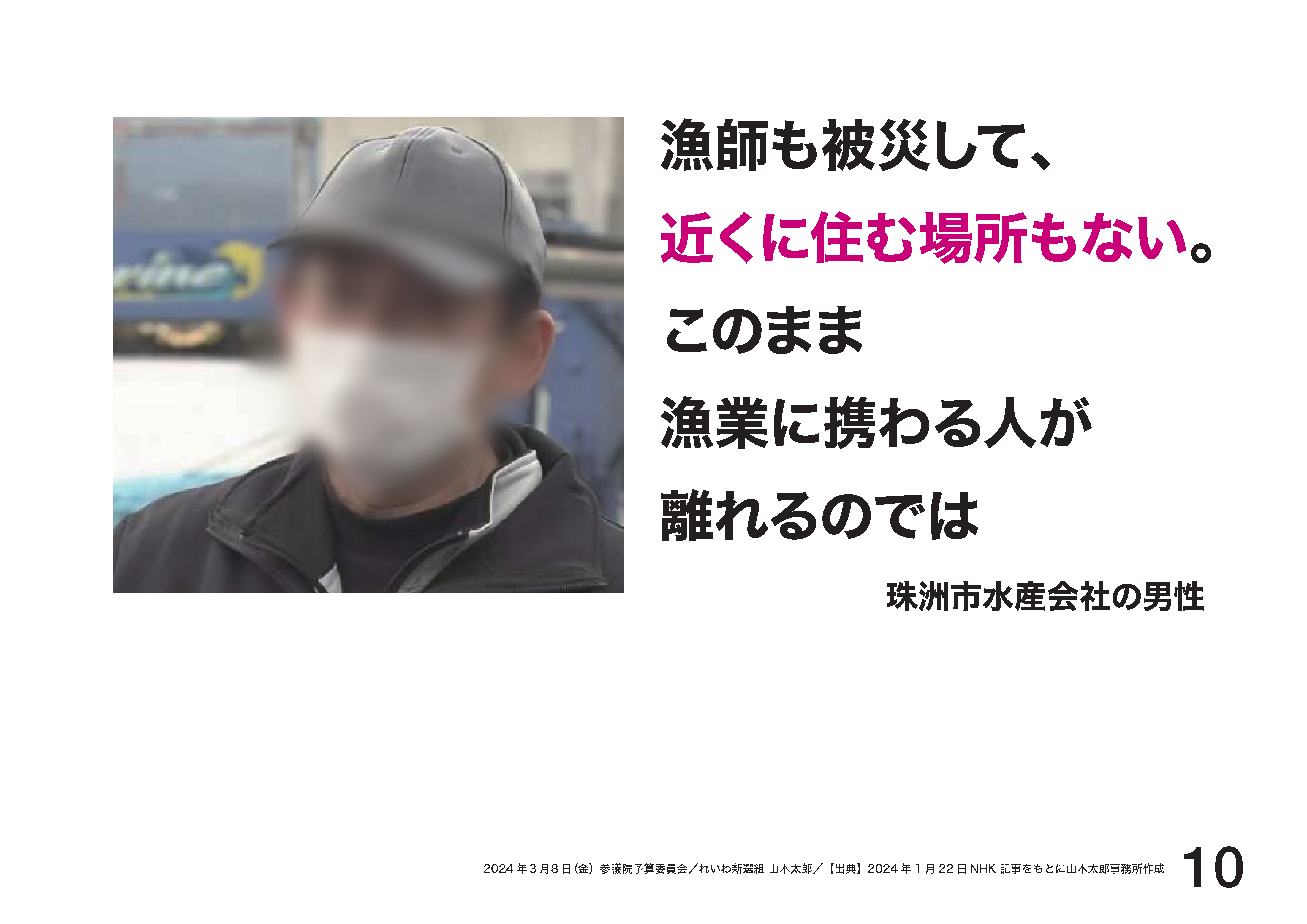 珠洲市の水産会社社長は、港の近くに住む場所もない、このまま漁業に携わる人が離れるんじゃないか、不安になる。