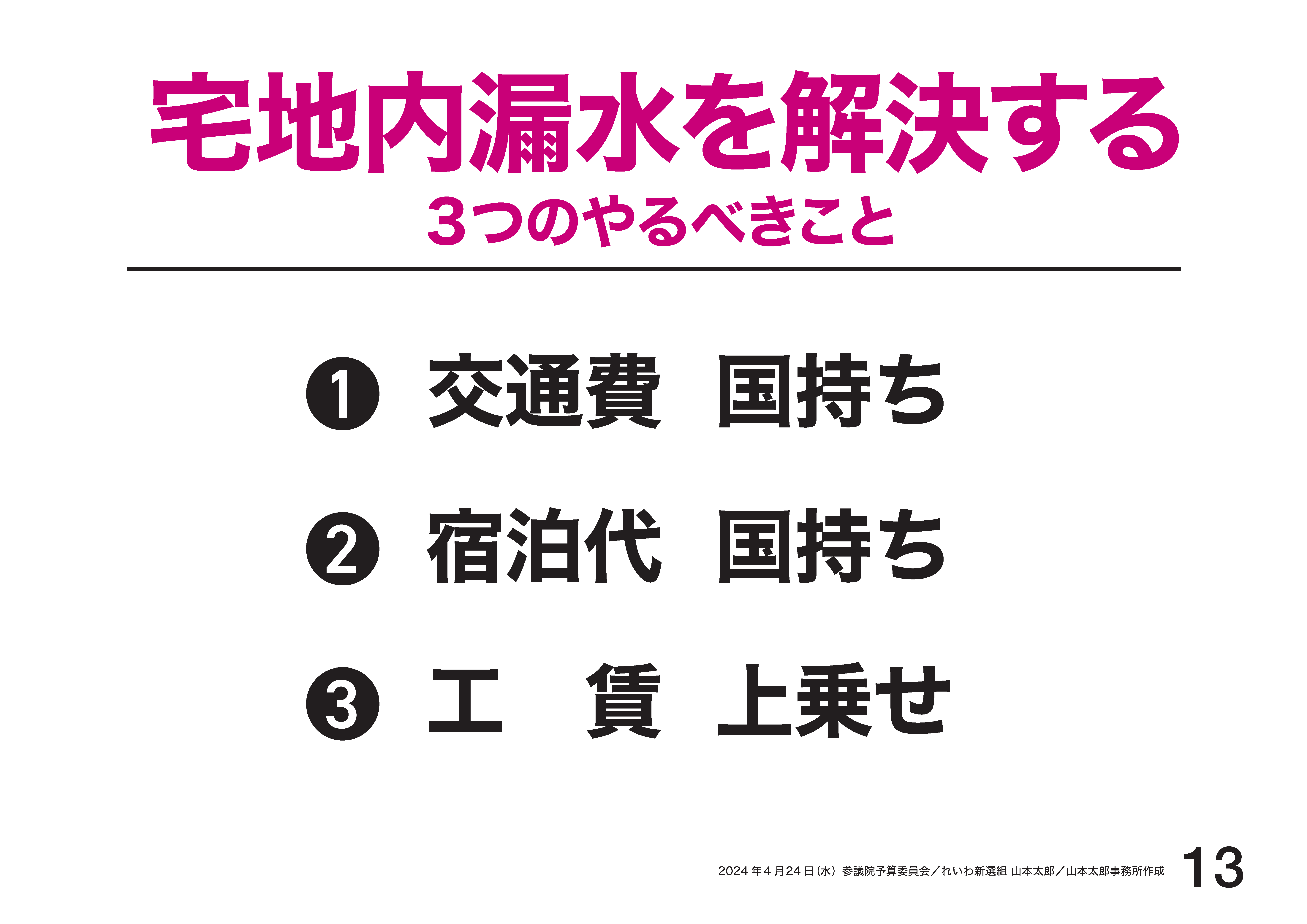 水道業者の交通費と宿泊代と工賃を上乗せした形で、工賃上乗せしないと、この宅地内の修繕に関しては、工賃安過ぎて人なかなか集められないんです。気持ちはあるけど行けない人たちいっぱいいる。
