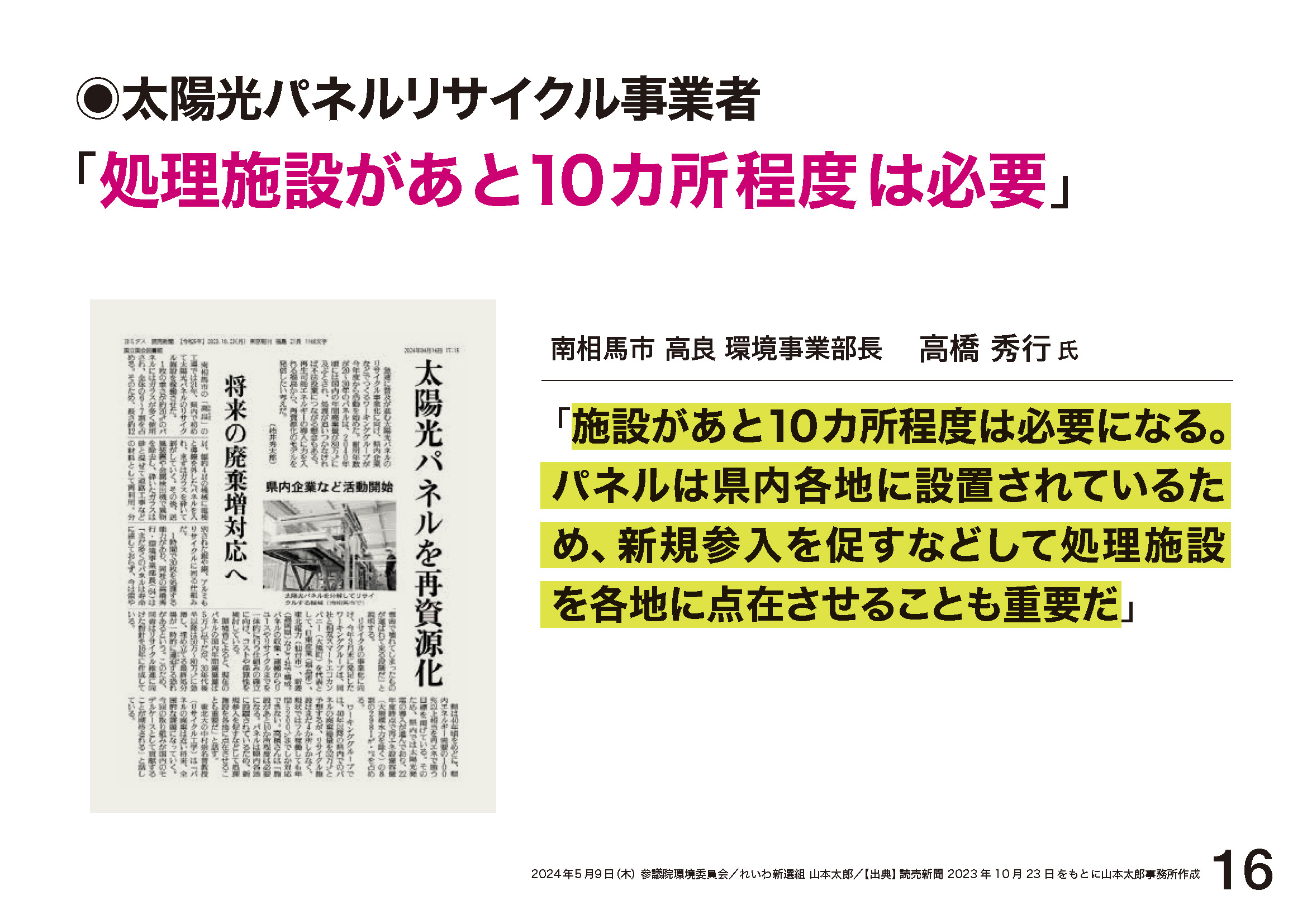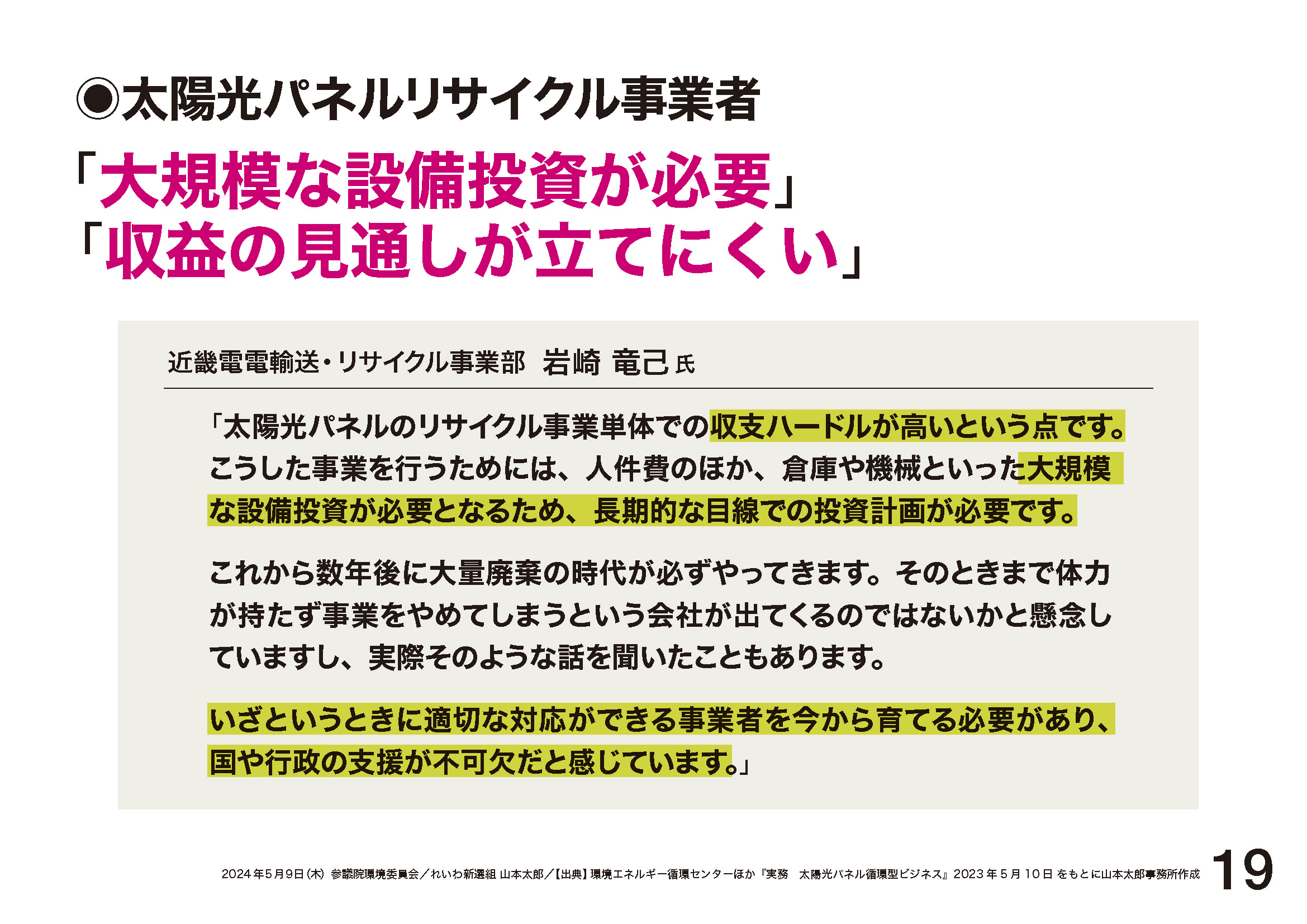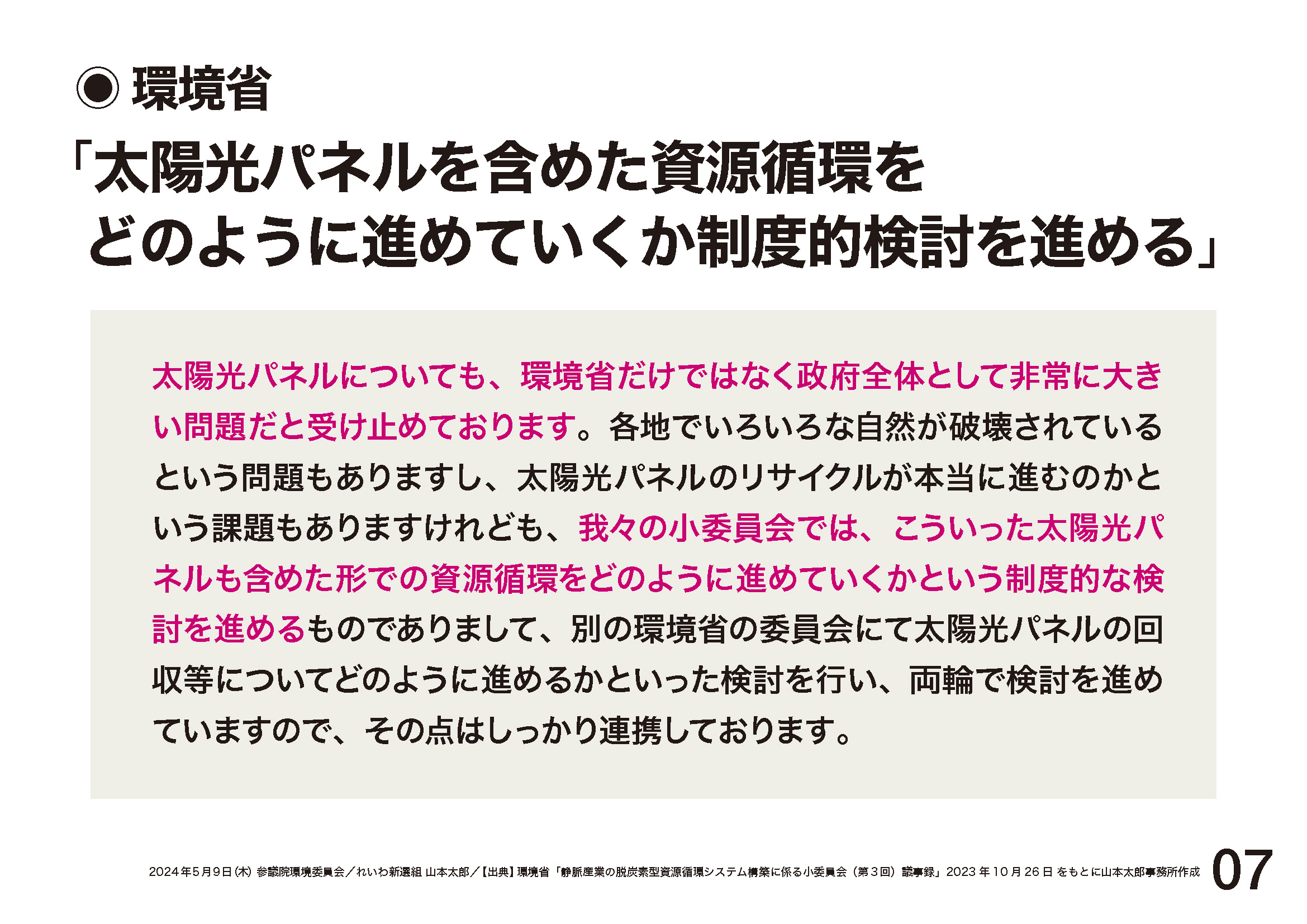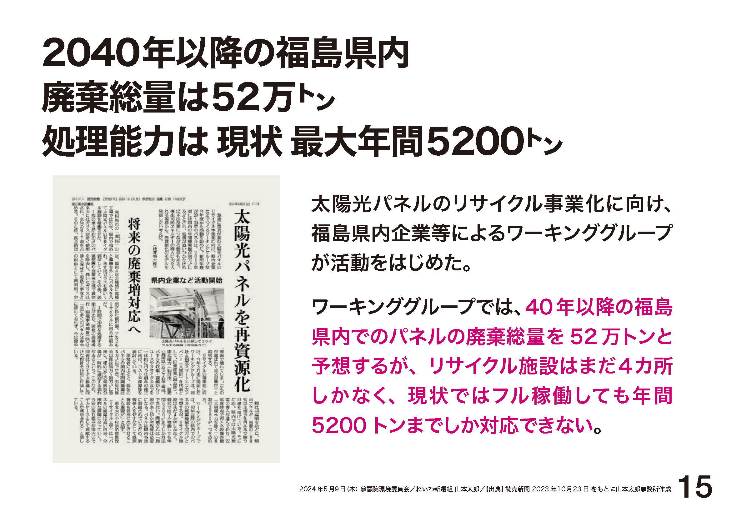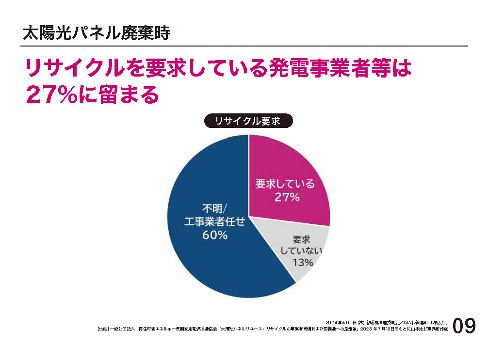2024.5.9 環境委員会「9年後には77万トン!どうする? 使用済み太陽光パネル」