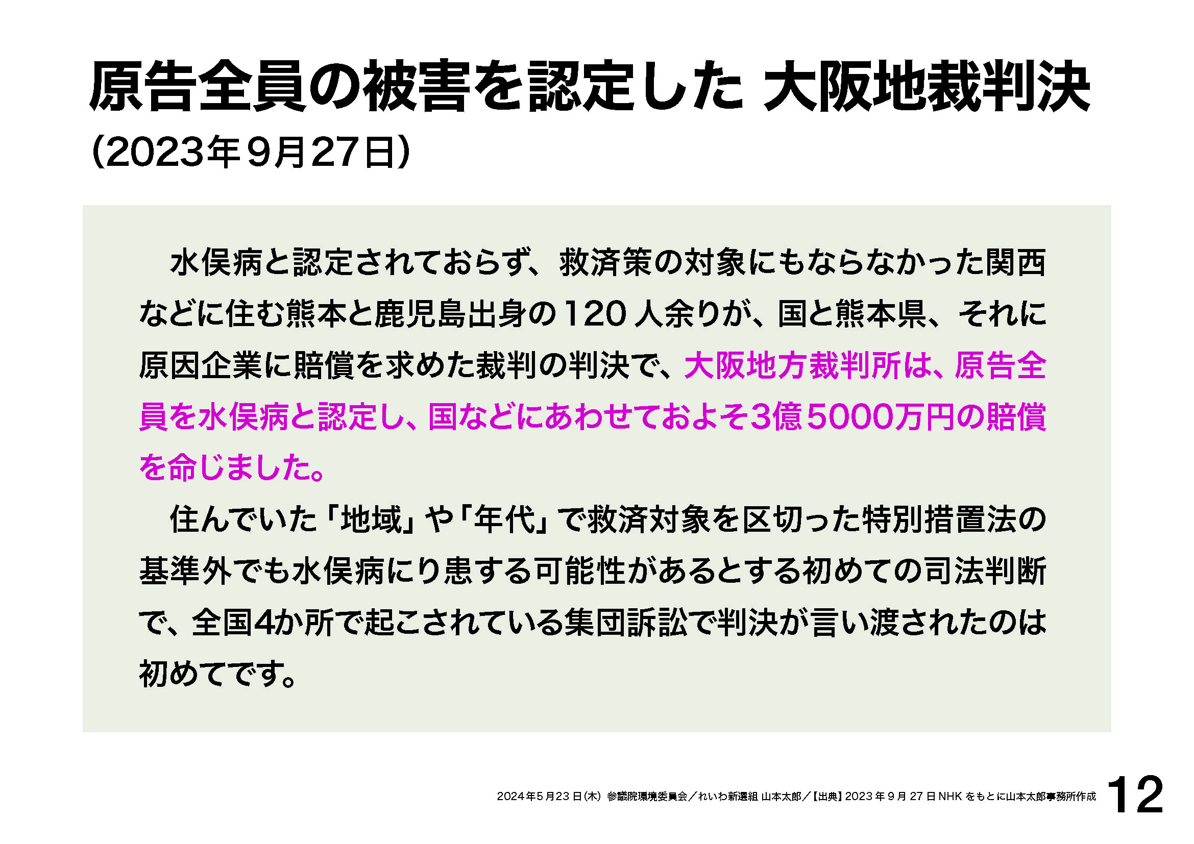 先ほどもお話が出てきましたけれども、2023年9月、大阪地裁は、原告全員の水俣病を認め、国に賠償を求める判決を下した。
