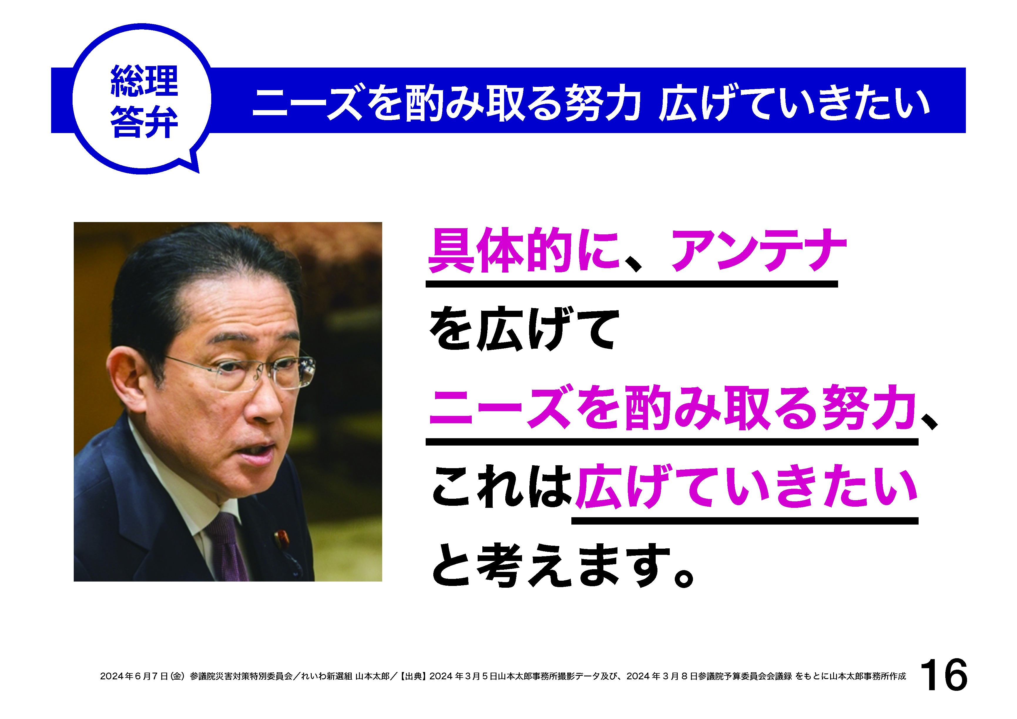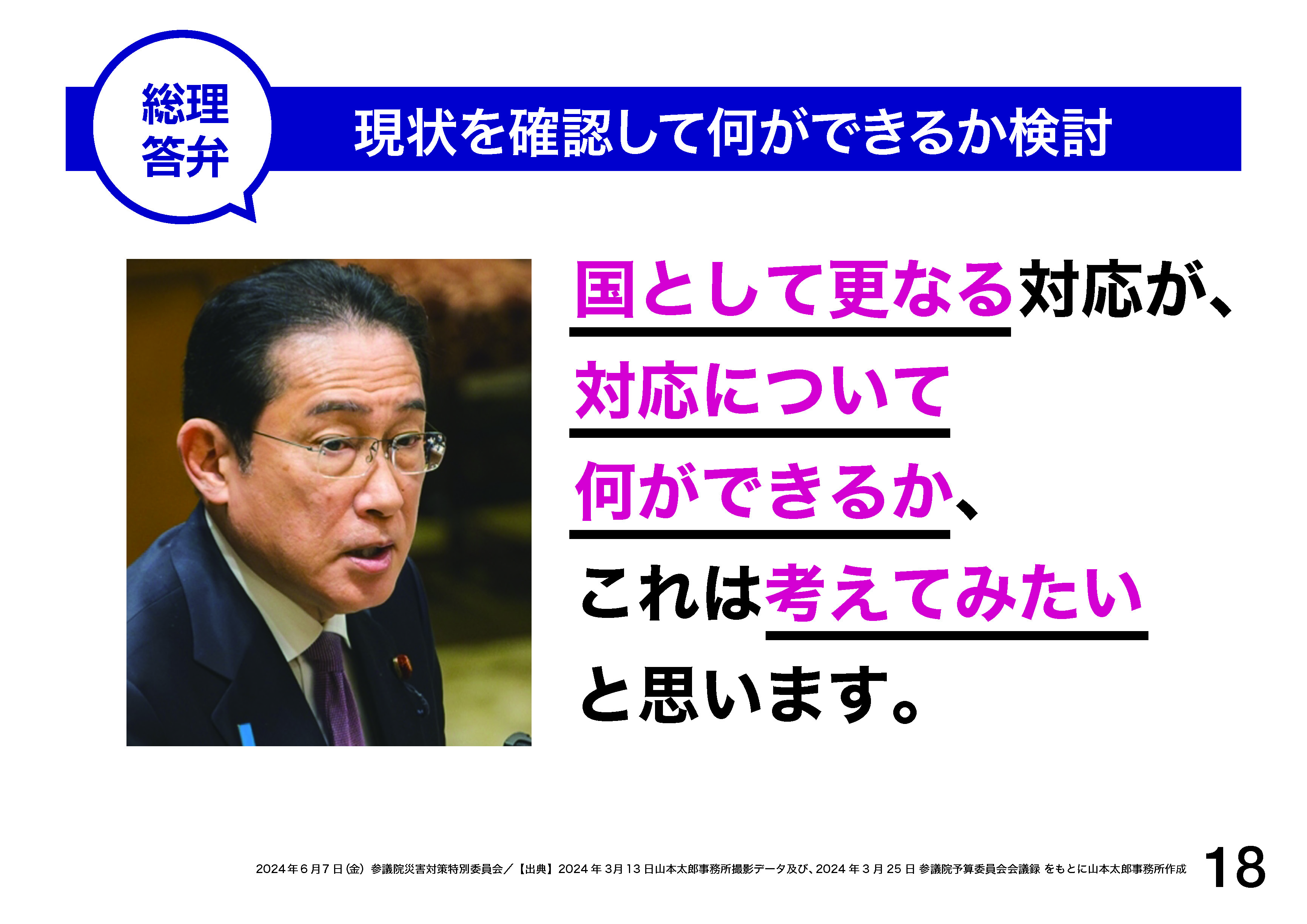 2024.6.7 災害対策特別委員会「総理、前向きな返答してたけど その後どうなった?」