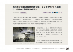 能登半島地震では、志賀原発内部でも変圧器など様々な設備が損傷。