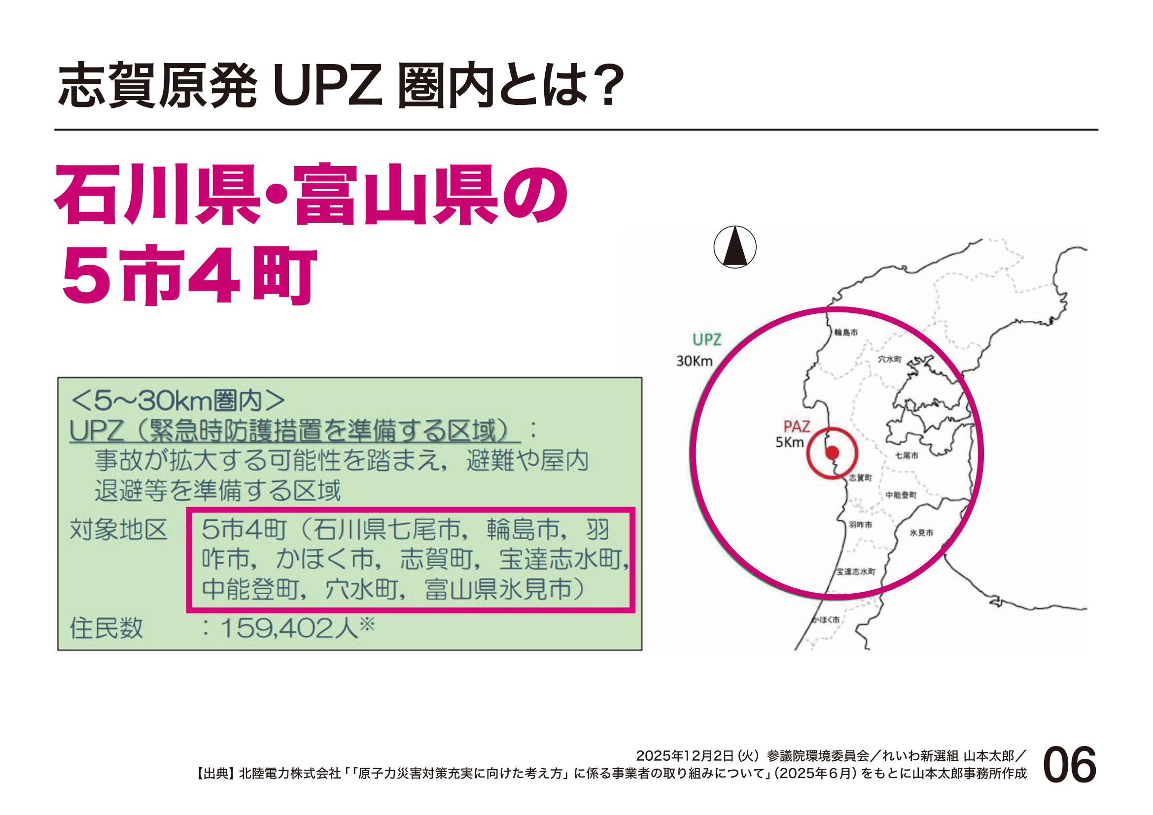 原発事故が起きれば屋内退避を求められる、志賀原発、5km〜30km圏内。