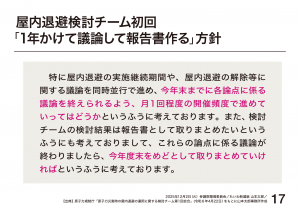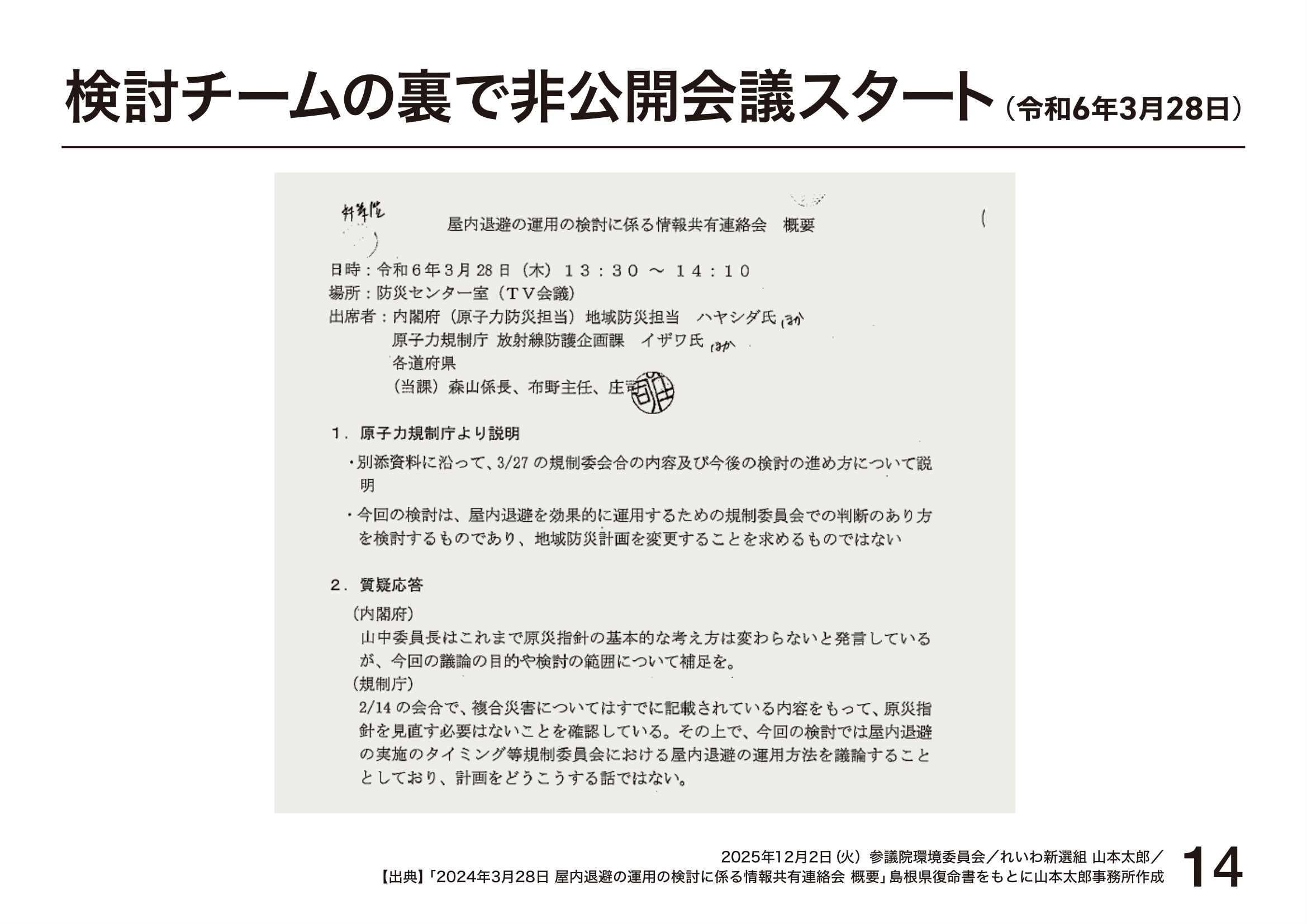 実はこの翌日、3月28日、屋内退避の問題を自治体と政府の担当者が協議する裏会議がスタートしました。