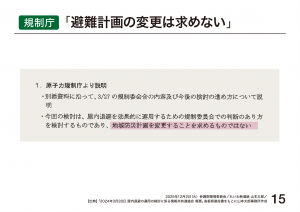 能登半島地震を受けて避難計画を変えるという動きにはならないと、政府が明言しちゃっているんですよ。