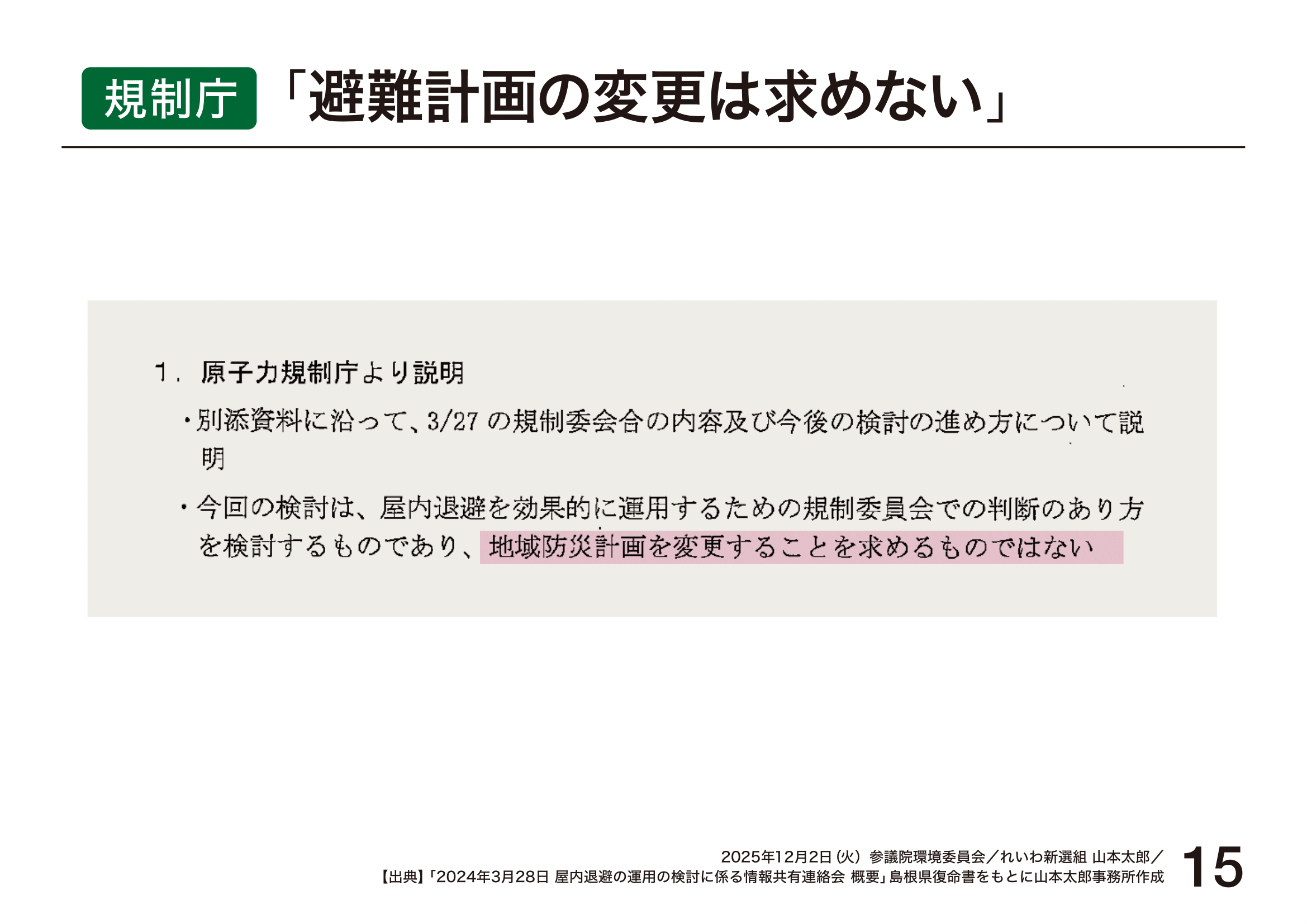 こんな姿勢でいくら議論を重ねても、実効性のある屋内退避計画作りなんて役立つはずがないんですよ。