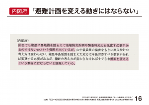 表の検討チームを立ち上げて議論はするものの、避難計画の中身は変えない。