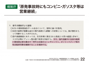 コンビニやガソリンスタンドなど民間事業者は、原発事故の渦中であっても営業を継続されることが必要と考えられる、営業できるものであるという整理なんですよ。