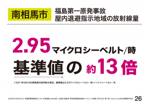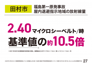 例えば東電原発事故、屋内退避指示が出た南相馬市、田村市の放射線量、