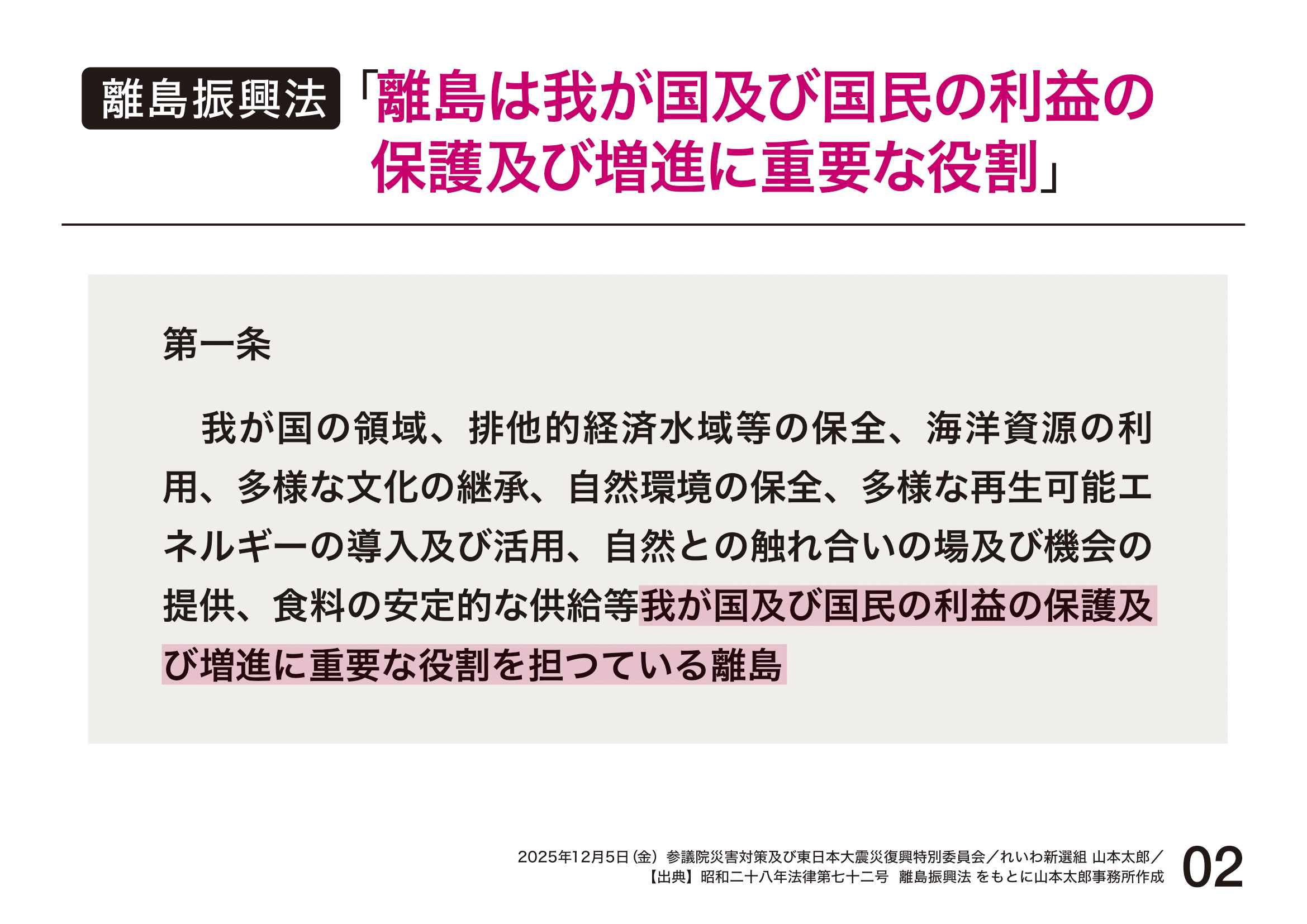 離島は国益の保護のためにも重要、日本国にとって離島は宝である。