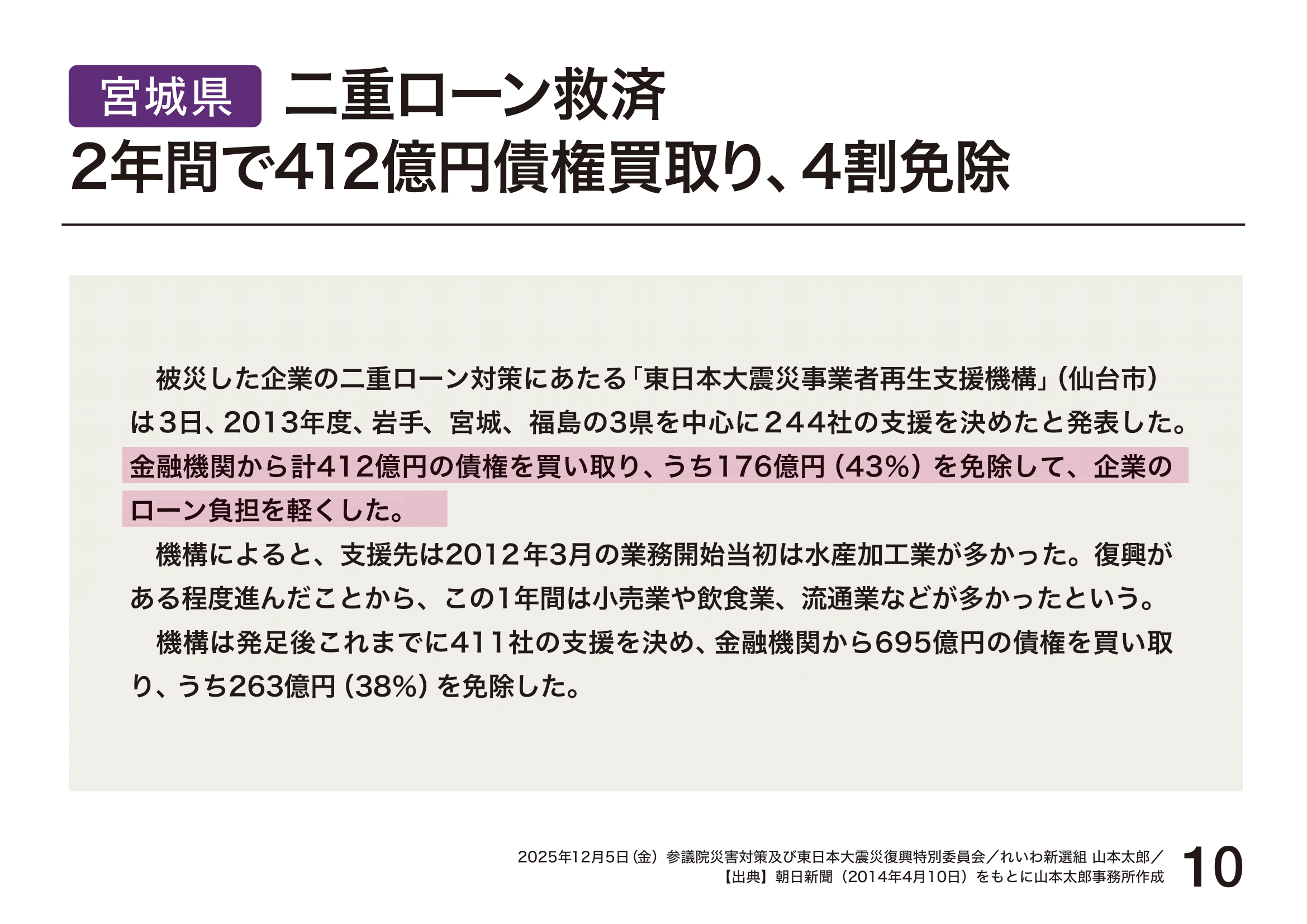 宮城県。同機構が2年間で412億円の債権を買い取ったうち、176億円を免除。
