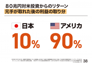 しかも、日本側が80兆円の元手が取れた後は、日本の取り分は10%に激減、90%をアメリカに差し上げる約束なんですね。