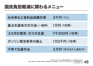 地方重点支援交付金では、一世帯当たり1万円ほどの補助だとか、