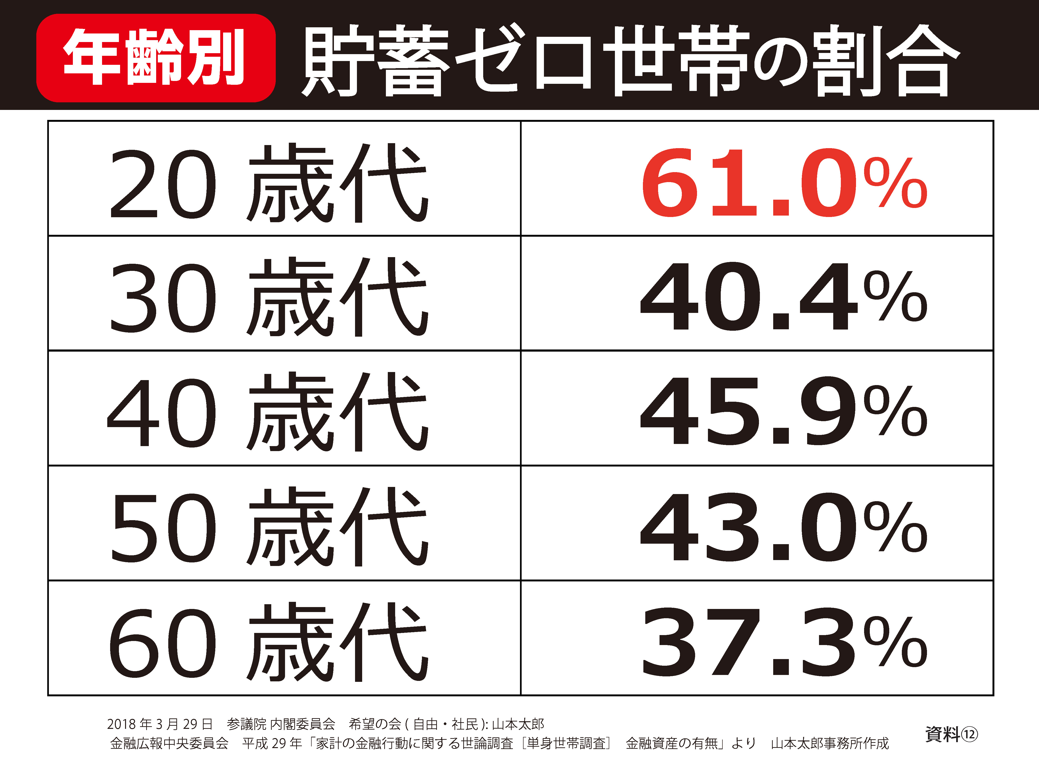 資料の十二に、日銀調べ、一人世帯の貯蓄ゼロ。大臣、ここ短くお願いしたいんですけれども、こんな状態になっているんですね。この惨状を放置して少子化克服できるとお思いになりますか。
