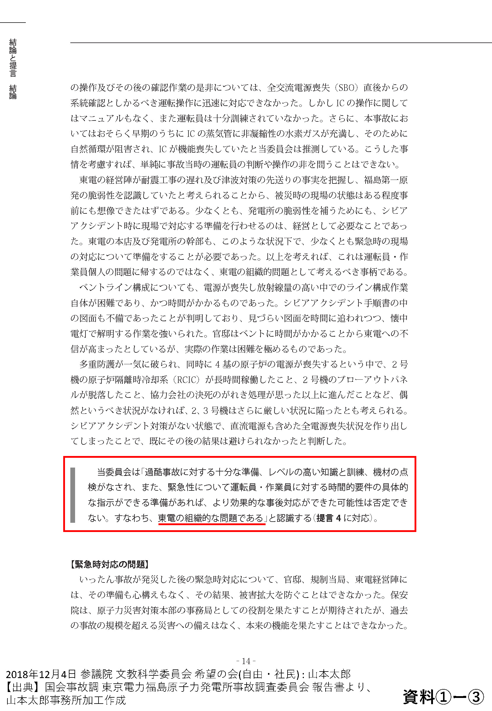 資料の①一の③、①一の④、同じく国会事故調報告書。
